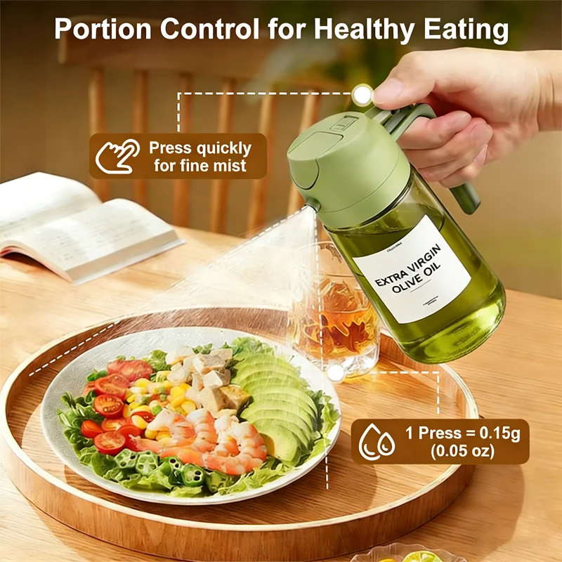 - **Ergonomic & User-Friendly** — Equipped with a secure buckle for effortless pouring and a seamless spray trigger that delivers a fine, even mist, perfect for evenly coating salads, grilled meats, vegetables, roasted dishes, or garnishing plates.