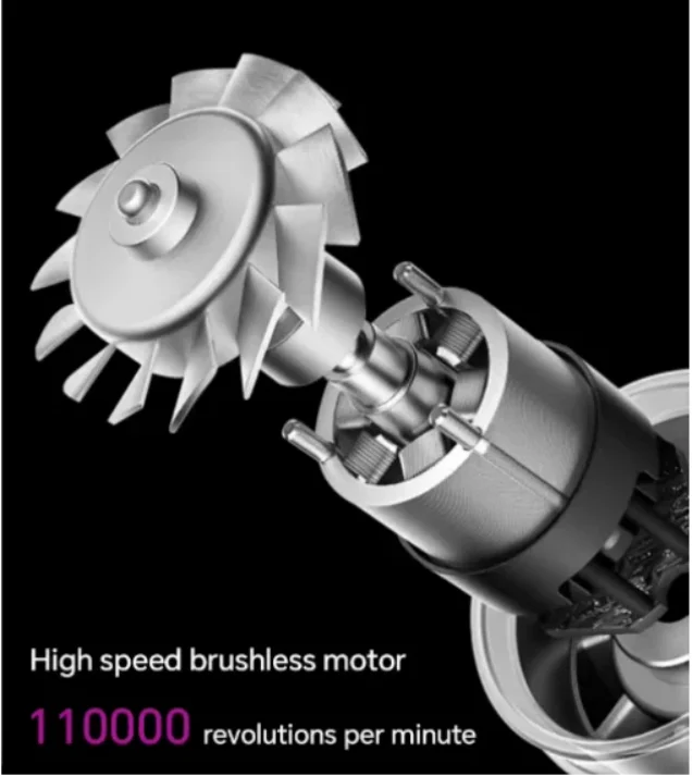 The 3-phase high-speed brushless motor blows air at a higher frequency, making it more effective for hair care than traditional blow dryers. |