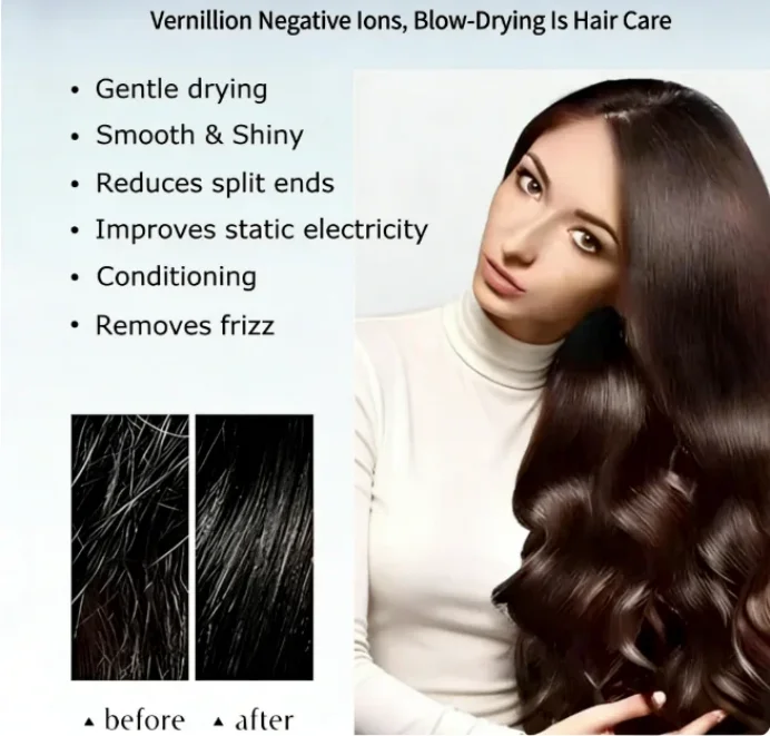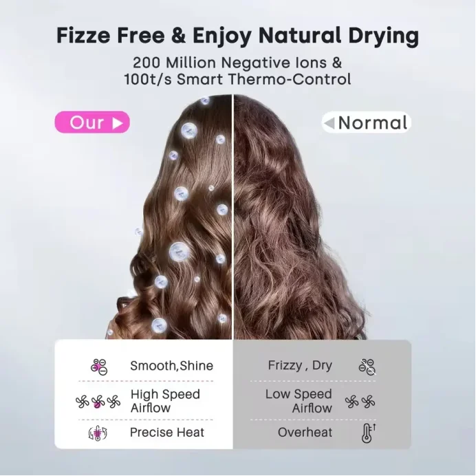 Higher content of negative ions; Built in 2 billion moisturizing negative ions, can help reduce static electricity in hair |