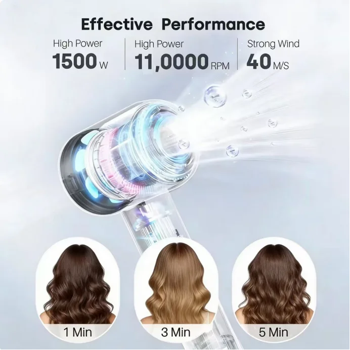1. Powerful 1600W Motor: Our professional hair dryer is equipped with a powerful 1600W motor, providing stable and efficient drying and excellent styling capabilities, helping you easily create your ideal style.